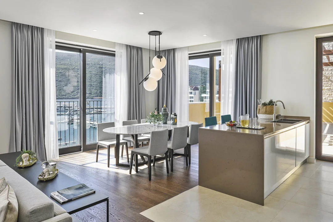 Named for the Venetian word for nearby Herceg Novi, each features classic Mediterranean styling that pays tribute to that heritage. Natural materials lend a relaxed feel, while sea-facing windows let in plenty of light. Large open balconies, meanwhile, offer the perfect place for a lazy brunch or a sundowner cocktail.